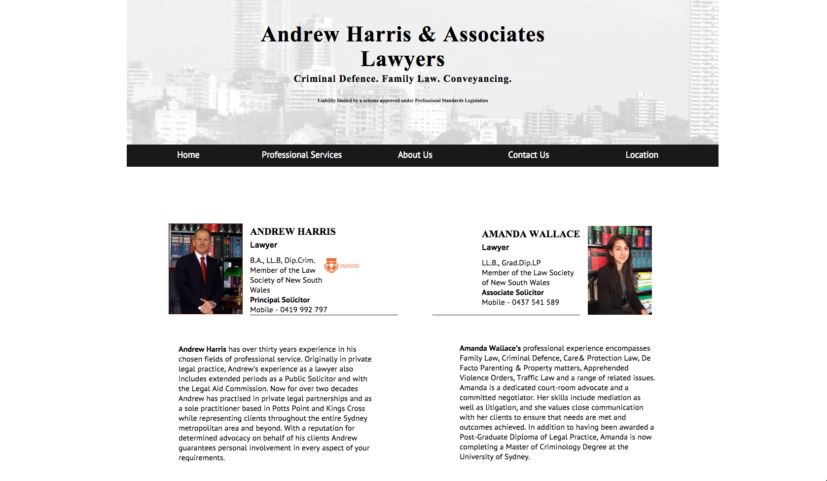 The client required a new website that was redesigned in order to meet a more contemporary and professional aesthetic style. The website was designed and coded in html and css from the ground up. The website can be viewed here: http://andrewharrislawyer.com